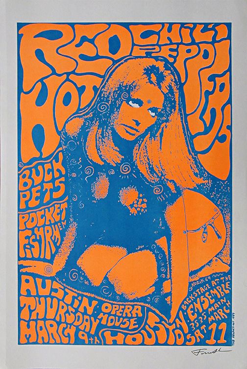 Taking the below poster for the Red Hot Chili Peppers 1986 tour as an example of typesetting that I find satisfying to view… My reasoning for this particular choice is that the type fits around the focal point, adding to the design as a whole. It goes somewhat against what Beatrice Warde’s argument suggests – that the text and information takes precedence over the design. In this case I feel that the two elements actually complement each other and a nice balance between design and information is struck. The psychedelic style of font allows for the form to be fairly fluid, thus all the information is present, and legible.